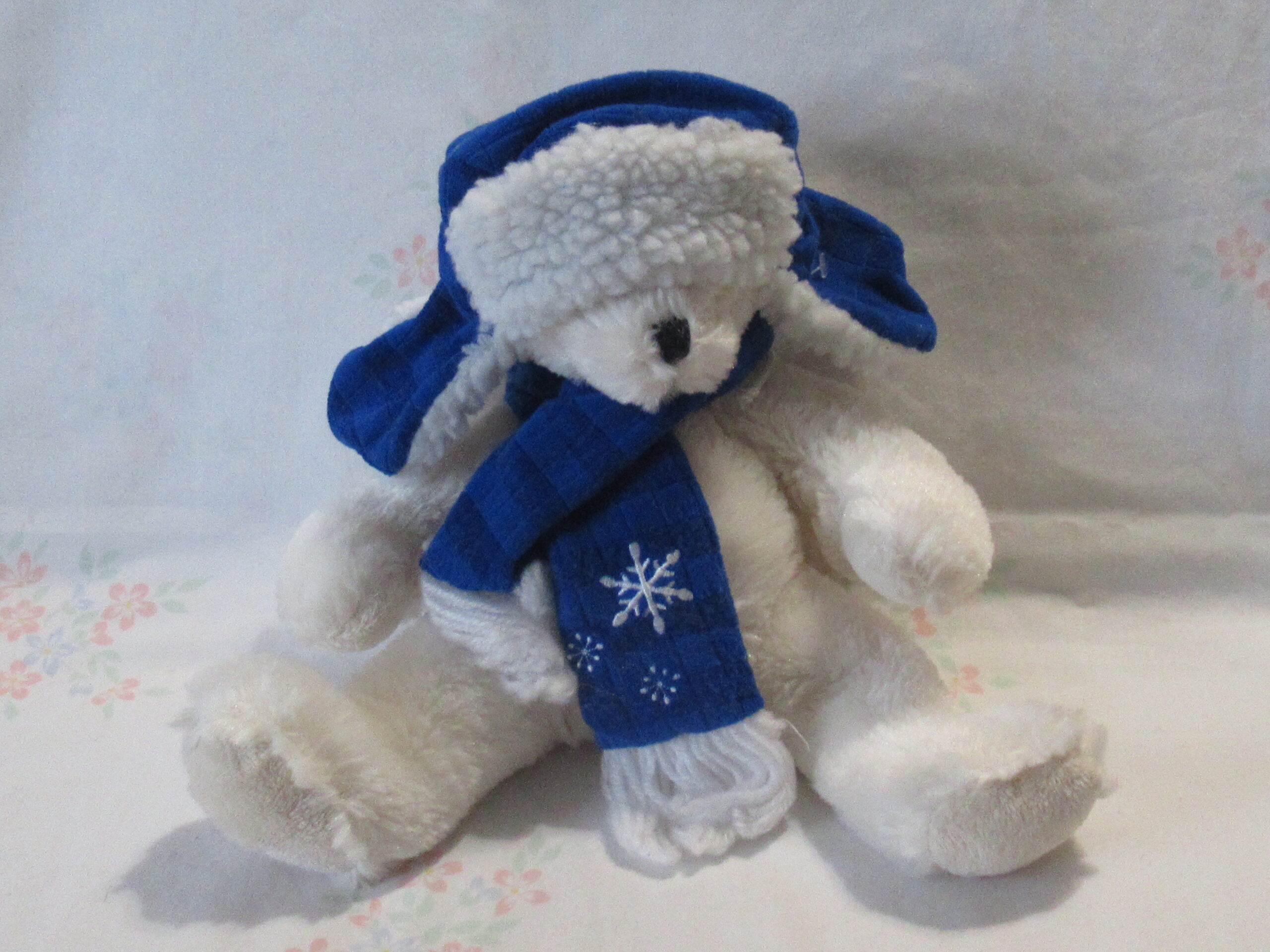 White Bear with Blue Hat and Blue Scarf With White Snowflakes