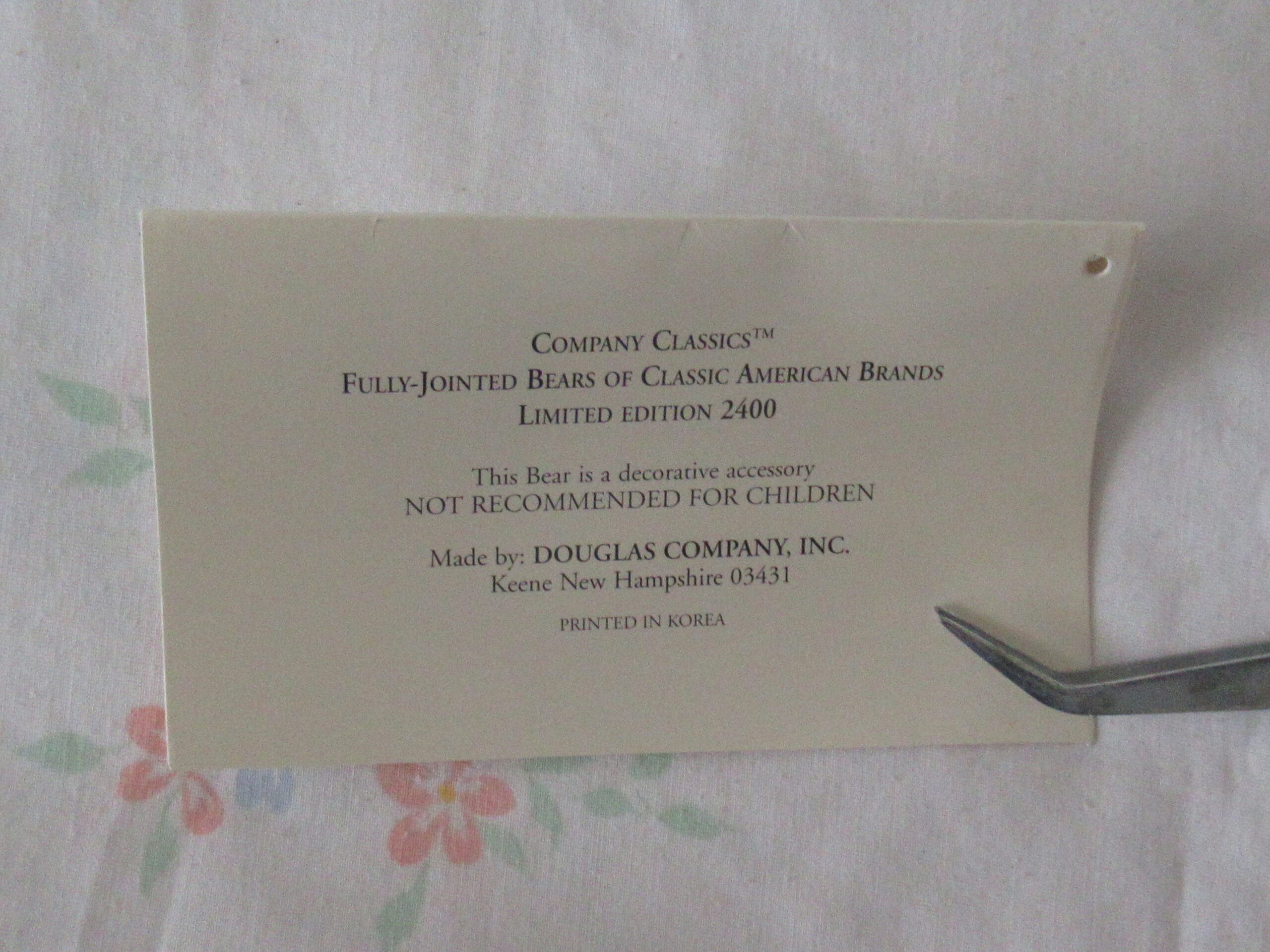 Tush Tags attached – paper tag in box