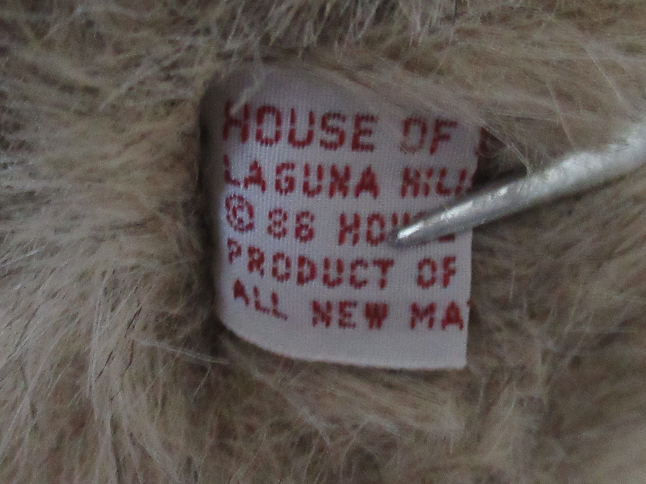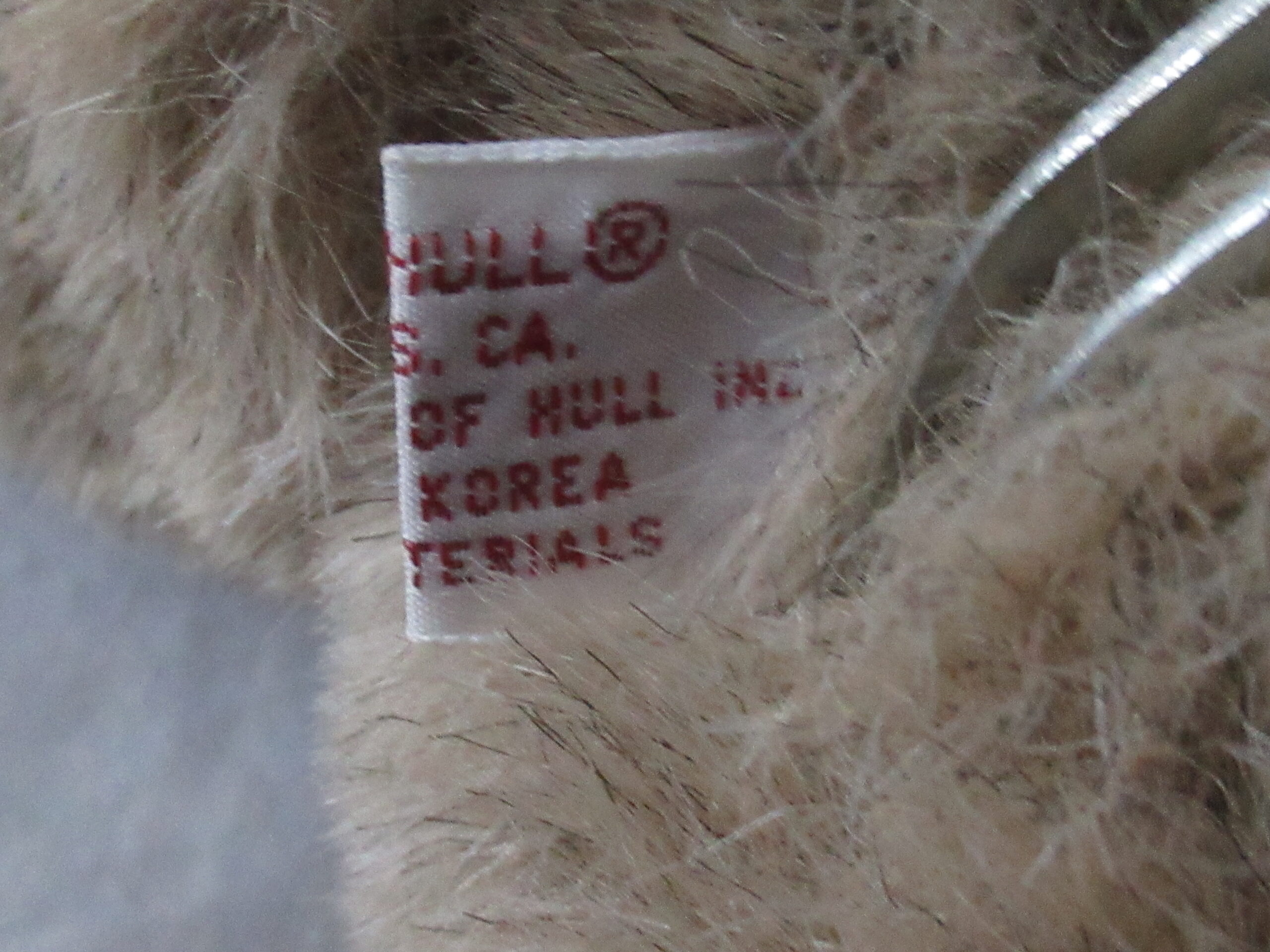 Tush Tag attached – paper tag attached and has creases, corner wear and discoloration